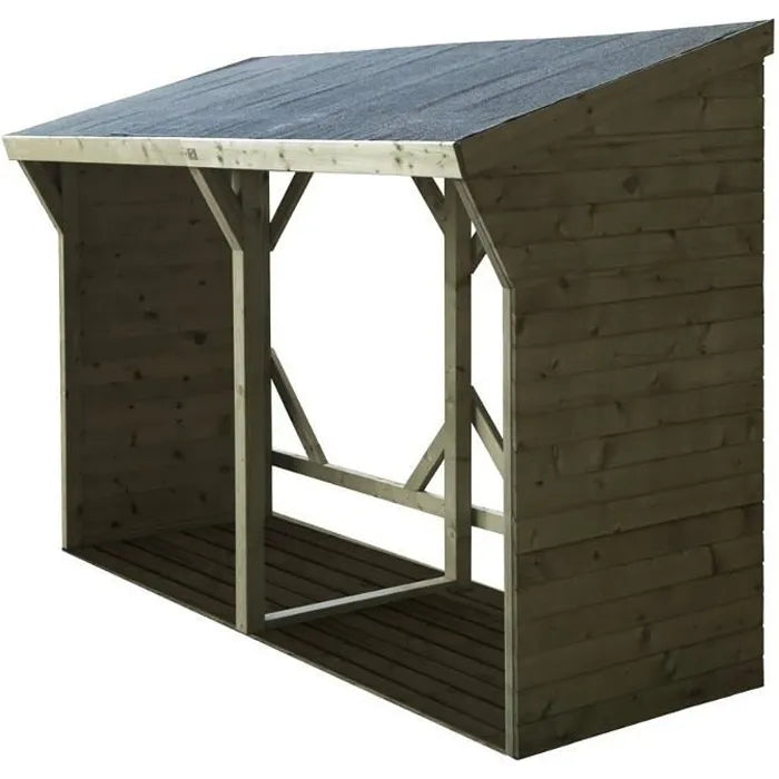 Der Brennholz-Unterstand Kiev aus druckbehandelter Waldkiefer ist ideal, um Ihr Brennholz trocken zu lagern. Er wird mit einem Boden geliefert und bietet reichlich Stauraum. Die Außenmaße betragen 281 x 113 x 185 cm.
