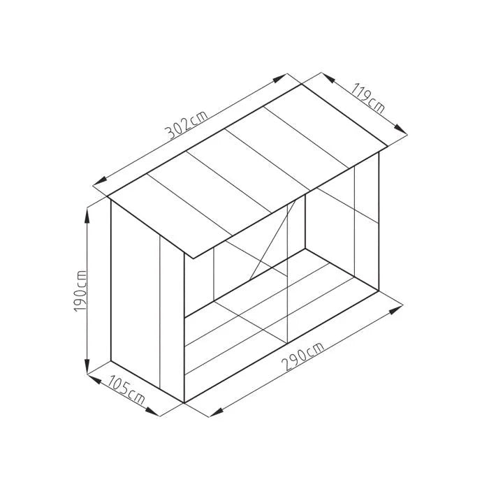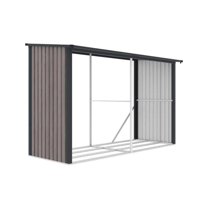 Dieser Brennholz-Unterstand aus feuerverzinktem Stahl bietet mit einem Volumen von 5,78 m³ reichlich Platz, um Ihr Brennholz effizient zu lagern. Die Oberfläche in Holzoptik vereint die natürliche Ästhetik von Holz mit der Robustheit und Langlebigkeit von verzinktem Metall und garantiert so optimalen Schutz vor Witterungseinflüssen. Dank der einfachen Montage und der guten Belüftung bleibt Ihr Holz die ganze Saison über trocken und einsatzbereit. Ideal für eine langlebige Außenlagerung mit elegantem Design.